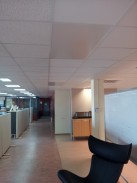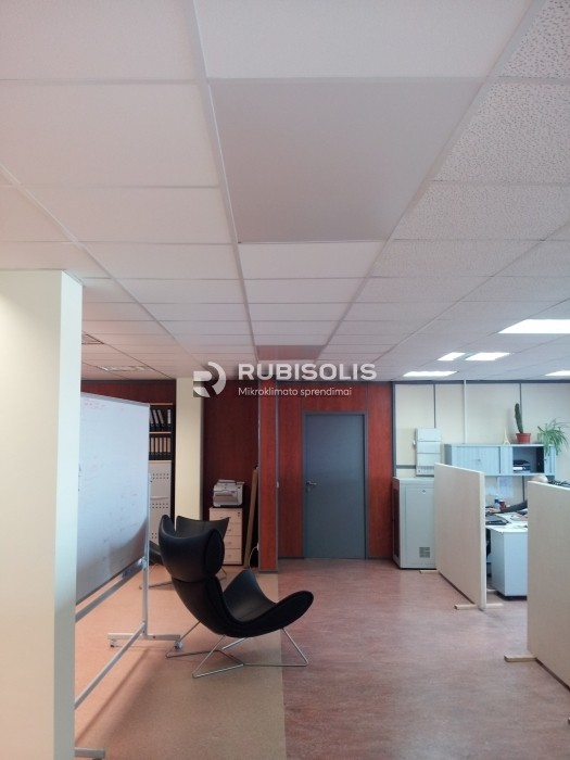Biuro patalpų papildomam šildymui pasirinktos šildymo plokštės, kurios yra įmontuotos į pakabinamų lubų sistemą "Armstrong". Taip sutaupoma erdvės, o ir šildymo elementai yra beveik nepastebimi. Temperatūrai valdyti yra naudojamas programuojamas savaitinis patalpos termoreguliatorius.