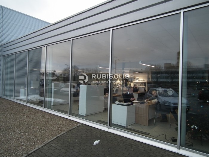 Naujų automobilių prekybos salone "AUTOJUTA" sumontuotos natūralaus šildymo plokštės Infrapower.