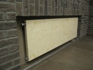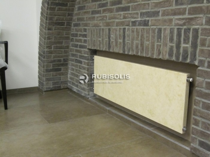 Konferencijų salė šildoma vandeniniais natūralaus akmens radiatoriais Marble Heating. Akmuo - marmuras Gialo Atlantide.