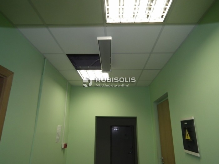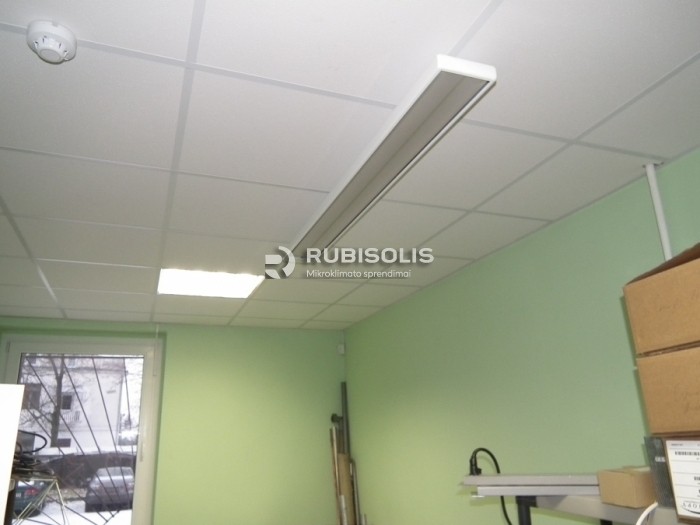 Administracinių patalpų šildymui pasirinkti spinduliniai bei kvarciniai infraraudonųjų spindulių šildytuvai.