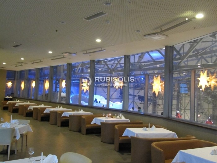 Snow arenoje, pagrindiniame 250 m2 dydžio restorane buvusi šildymo sistema buvo nepajėgi palaikyti reikiamos temperatūros. Šaltaisiais mėnesiais trūkdavo 5-6 laipsnių iki komforto. Įrengtas papildomas šildymas su Energoinfra šildytuvais. Sprendimas tikrai pasiteisino. Klientas patenkintas, nes šilumos dabar pilnai pakanka ir be to, šildytuvai puikiai tiko prie interjero.