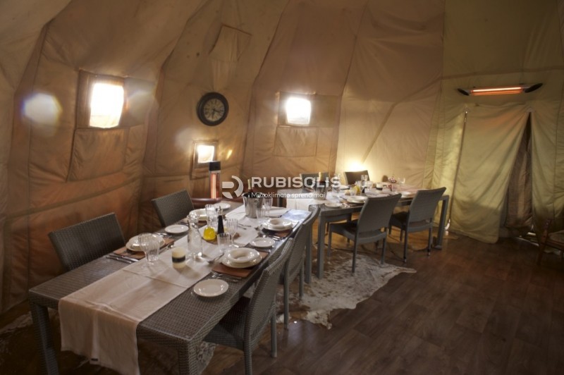 Tik vienu mygtuko spustelėjimu šildytuvai skleidžia malonią šilumą, kuri leidžia šios stovyklavietės svečiams jausti šilumą ir jaukumą, net kai lauke siaučia pūga.