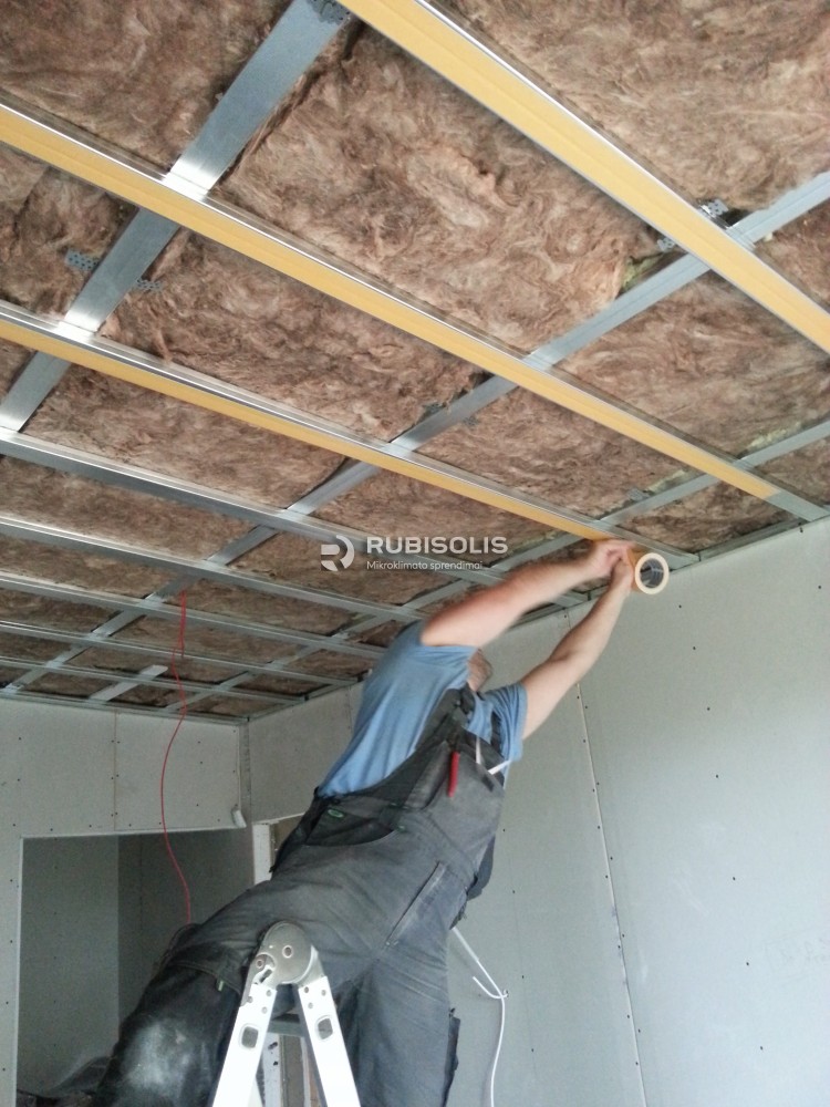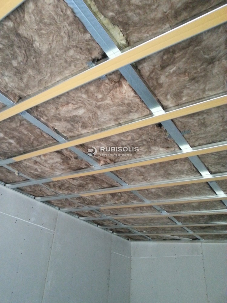 Karkasinio 130m2 namo pagrindinis šildymas lubine anglies pluošto plėvele.