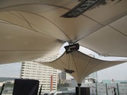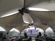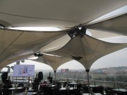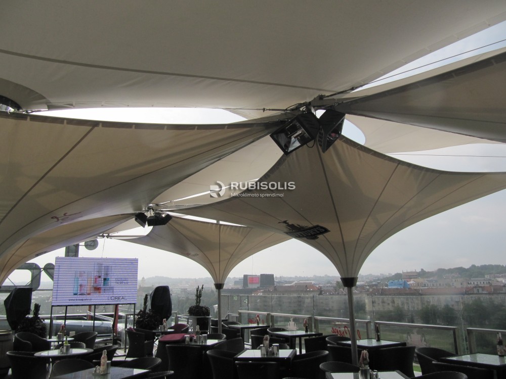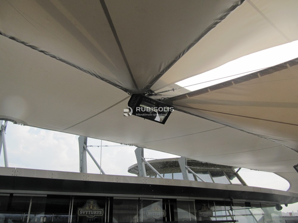 „La Crepe“ terasos ant Vilniaus centrinės universalinės parduotuvės stogo šildymas.