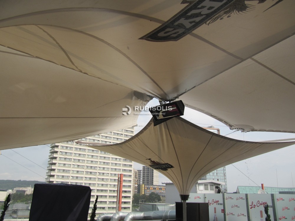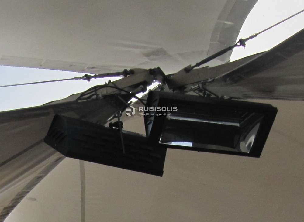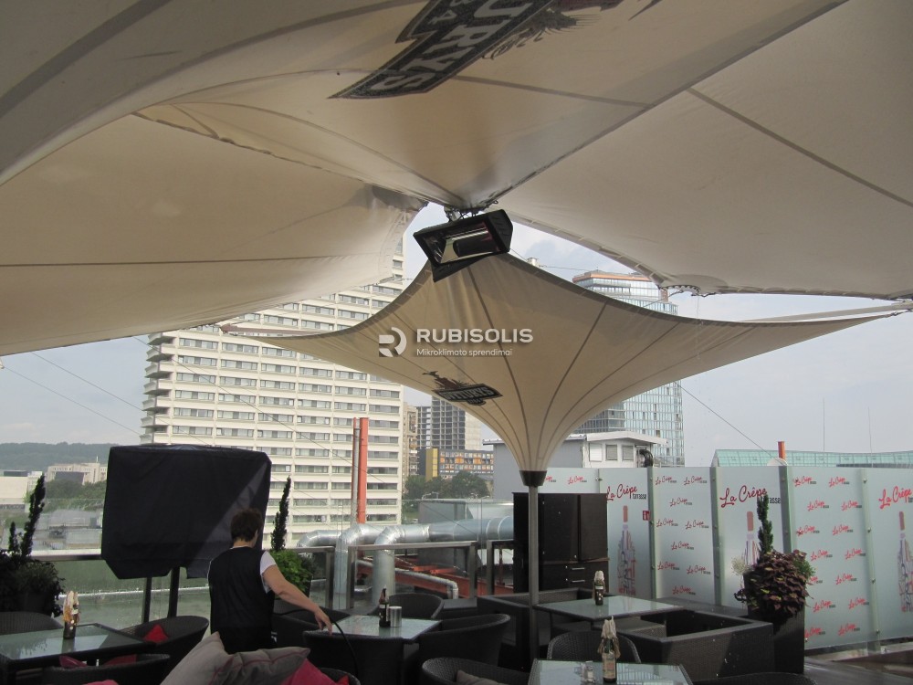 Terasoje sumontuota 10 vienetų "VARMA VR65" infraraudonųjų spindulių šildytuvų.