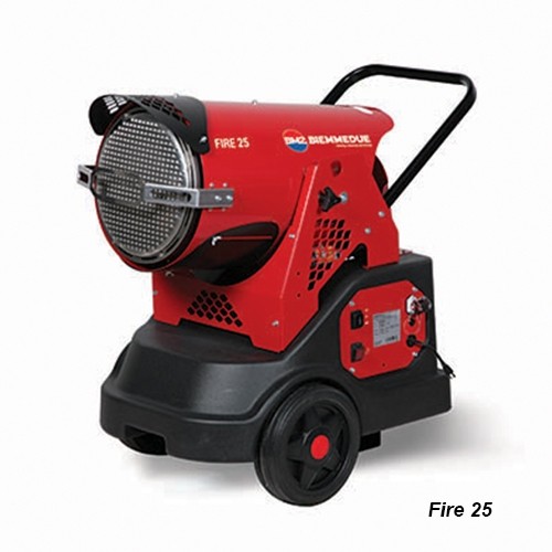 Dyzeliniai infraraudonųjų spindulių šildytuvai Biemmedue Fire tiekia tiesioginį šilumos srauto spinduliavimą be oro cirkuliacijos. Šildytuvo triukšmingumo lygis labai žemas. Šildytuve yra įmontuotas specialus BM2 degiklis ir pritaikytas kuro siurblys. Liepsna valdoma elektroniniu būdu su foto varžos jutikliu. Prie šildytuvo galima prijungti termoreguliatorių, drėgnomatį arba laikmatį. Maitinimo laidas (1,5m) su kištuku. Pasikartojanti greita ventiliacija vėsina degimo kamerą. Kuro vamzdžiai pagaminti iš gumos ir metalinio korpuso, todėl yra atsparūs angliavandeniliui. Polietileninis kuro bakas yra atsparus smūgiams. Šildytuvas turi prisukamą degalų įpylimo angos dangtelį, degalų išleidimo kamštį, kėlimo kablius. Įrenginio kūgį galima reguliuoti, pakreipti reikiamu kampu ir užfiksuoti pasirinktoje pozicijoje.