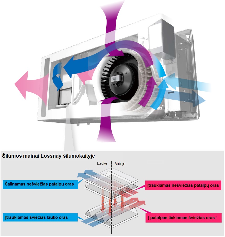 - 2 filtrų sistema tiekiamam ir ištraukiamam orui – švaresnis patalpų oras, retesnis šilumokaičio valymas;