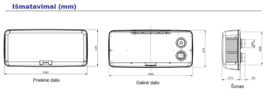 - Paprastas valymas, nes korpusas lygus, nėra grotelių;
