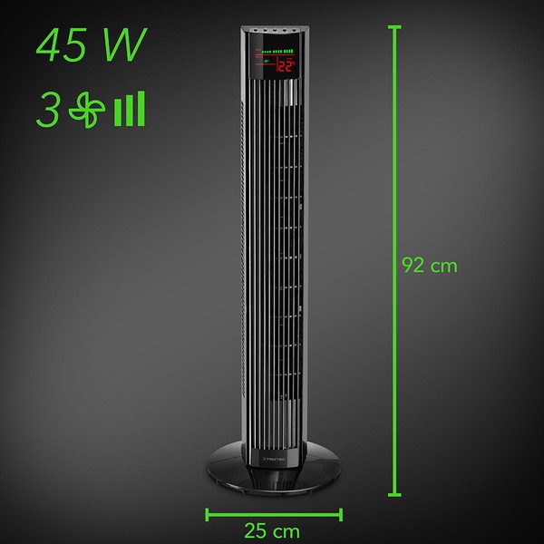 Naudodami galingą 45 W bokštinį ventiliatorių „TVE 31 T“, galėsite mėgautis vasara ir vėsintis gaiviu vėjeliu, net esant rekordinei temperatūrai lauke. Dėl stilingo, stabilaus ir taupančio erdvę ventiliatoriaus korpuso, pagaminto iš blizgios juodos spalvos, prietaisas tampa akį traukiančiu objektu svetainėje, miegamajame, vasarnamyje ar net parduotuvėje ir restorane.