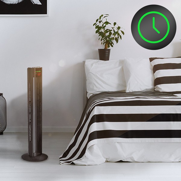 Integruotas 12 valandų laikmatis leidžia iš anksto suplanuoti ir išjungti ventiliatorių. Galite pakoreguoti trukmę iki automatinio išjungimo 1 valandos intervalais. Tai labai patogi funkcija, jei nenorite, kad ventiliatorius veiktų visą naktį.