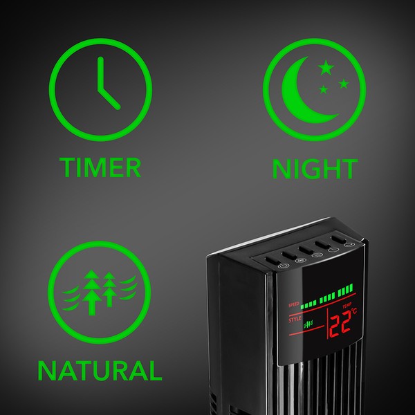 Nakties režimu ventiliatorius veikia itin tyliai bei skleidžia gaivų vėjelį. LED ekrano ryškumas automatiškai sumažėja, todėl galėsite gerai išsimiegoti ir pailsėti.