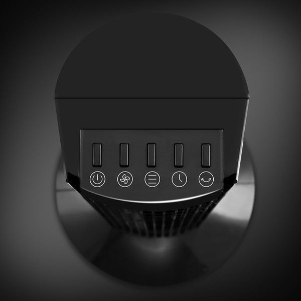 Priešingai nei įprasti ventiliatoriai su rotorinėmis mentėmis, šis bokštinis ventiliatorius veikia ašies, besisukančios aplink save, principu. Vėsinimo efektas išgaunamas kompaktišku būdu, besisukančios briaunos konstrukcijos prietaiso viduje dėka, kuomet oras yra išleidžiamas į patalpą per visą prietaiso aukštį. Ypač tylus veikimas net aukščiausiu režimu.