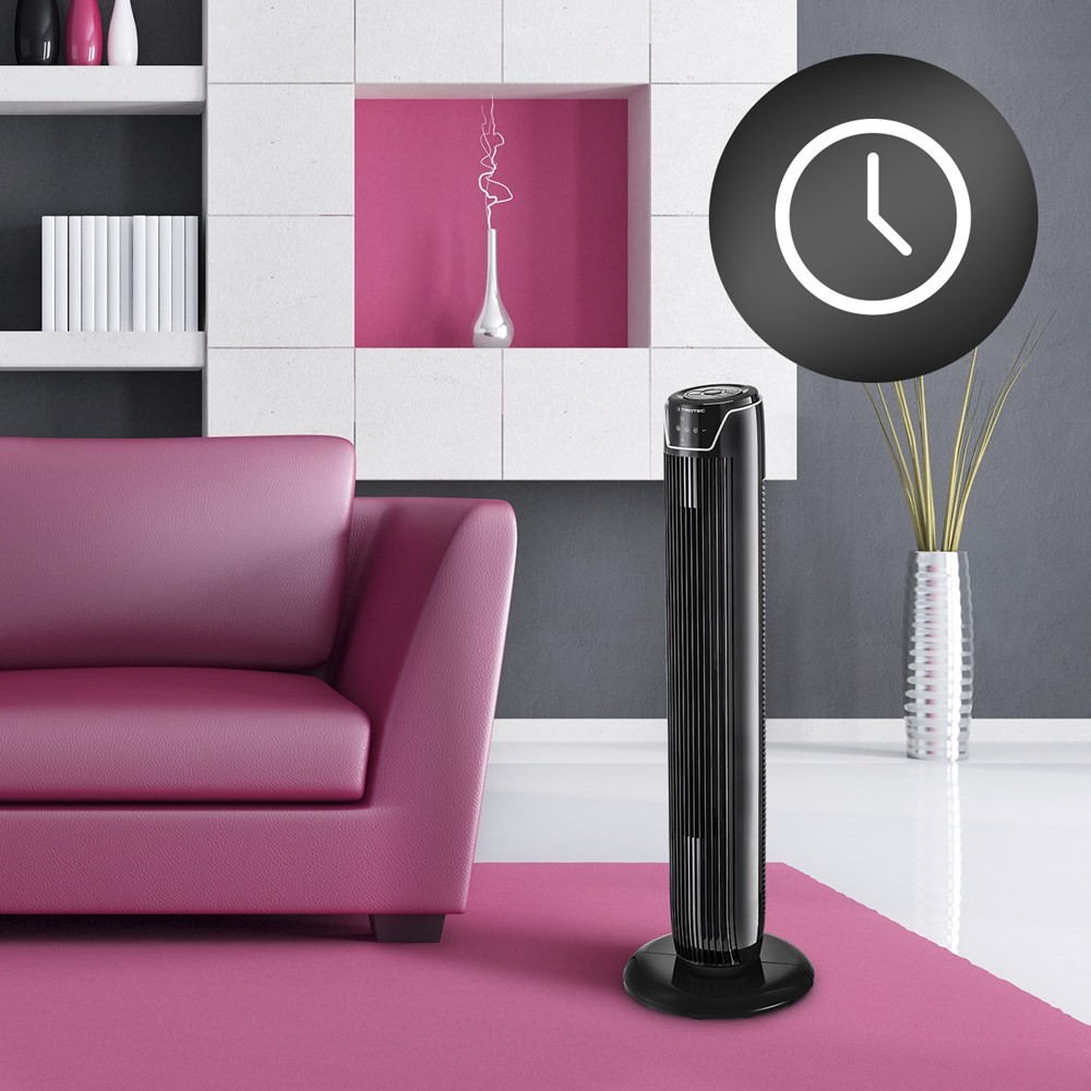 Trys ventiliatoriaus greičiai, pradedant nuo švelnaus vėjelio ir stipraus vėjo, suteikia šviežio oro tėkmę, pritaikytą atitinkamai temperatūrai ir kambario dydžiui. Norint užtikrinti, kad vėsinamas oras greitai ir tolygiai pasiskirstytų visame kambaryje, tereikia įjungti automatinę 60° pakreipimo funkciją. „TVE 31 T“ siūlo tris darbo režimus: normalų veikimą, natūralų vėją ir nakties režimą. Be to, kad mėgautis vėsuma būtų dar patogiau ventiliatoriaus turi nuotolinio valdymo pultą, laikmačio funkciją, nešimo rankenėlę, modernų LED ekraną, rodantį esamą kambario temperatūrą, ir atminties funkcija, leidžiančią išsaugoti vėliausiai pasirinktą veikimo režimą.