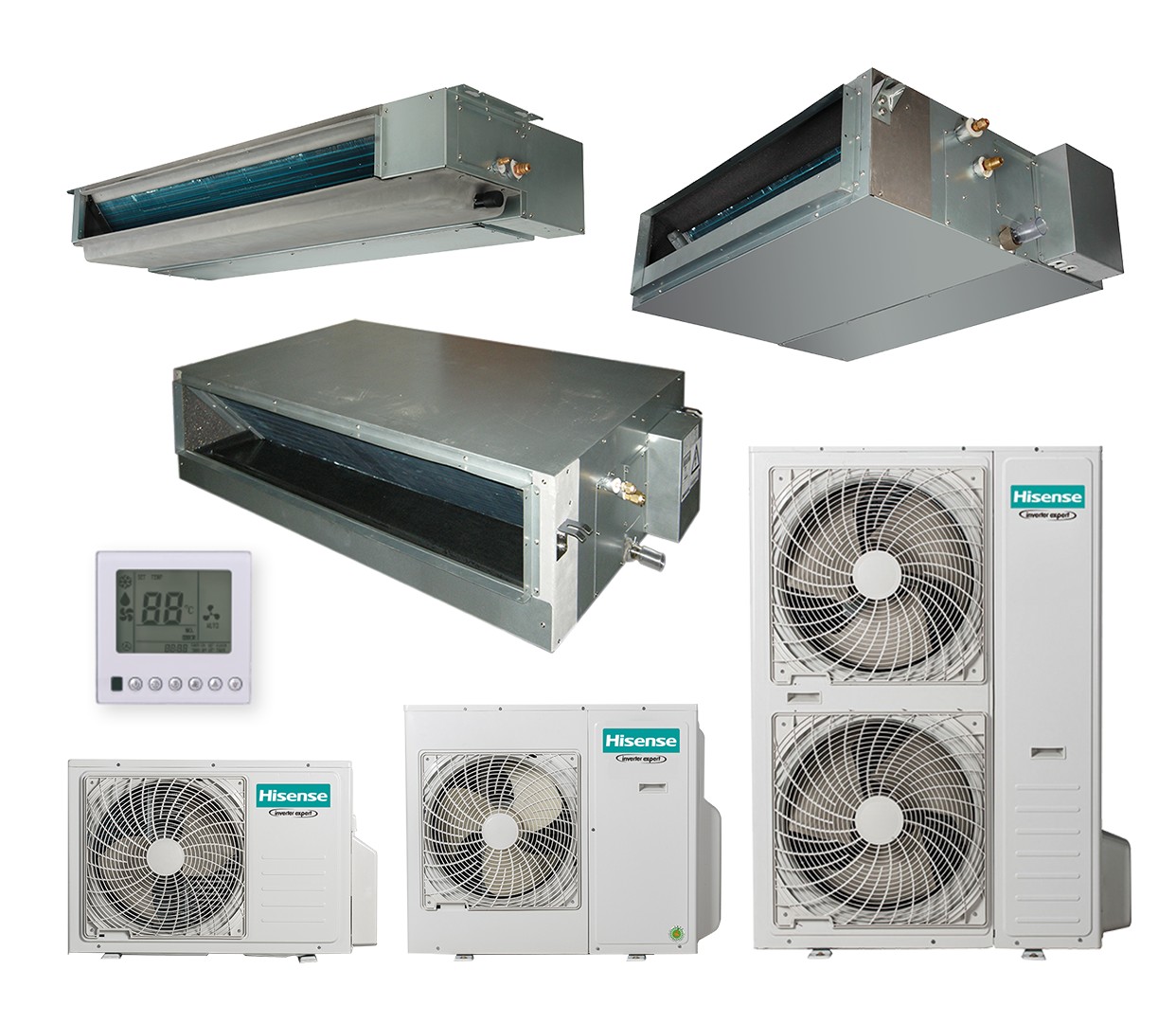 - Kanalinės (ortakinės) — vidinis blokas dažniausiai montuojamas paslėptose ventiliacijos sistemose. Tinkamos patalpose su neįprastu išplanavimu. Keičiamas slėgis leidžia tiksliai subalansuoti oro paskirstymą sistemoje. Šie įrenginiai yra apsaugoti nuo elektros šoko.