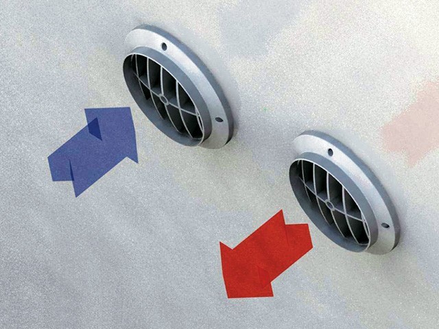 - Sienininės-lubinės — vidinis blokas montuojamas patalpose ant sienos arba lubų.