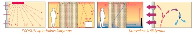 - Šildant tokiu būdu, temperatūros paskirstymas kambaryje subalansuojamas vertikaliau, sudarant 1-2 laipsnių temperatūros skirtumą tarp grindų ir lubų.
