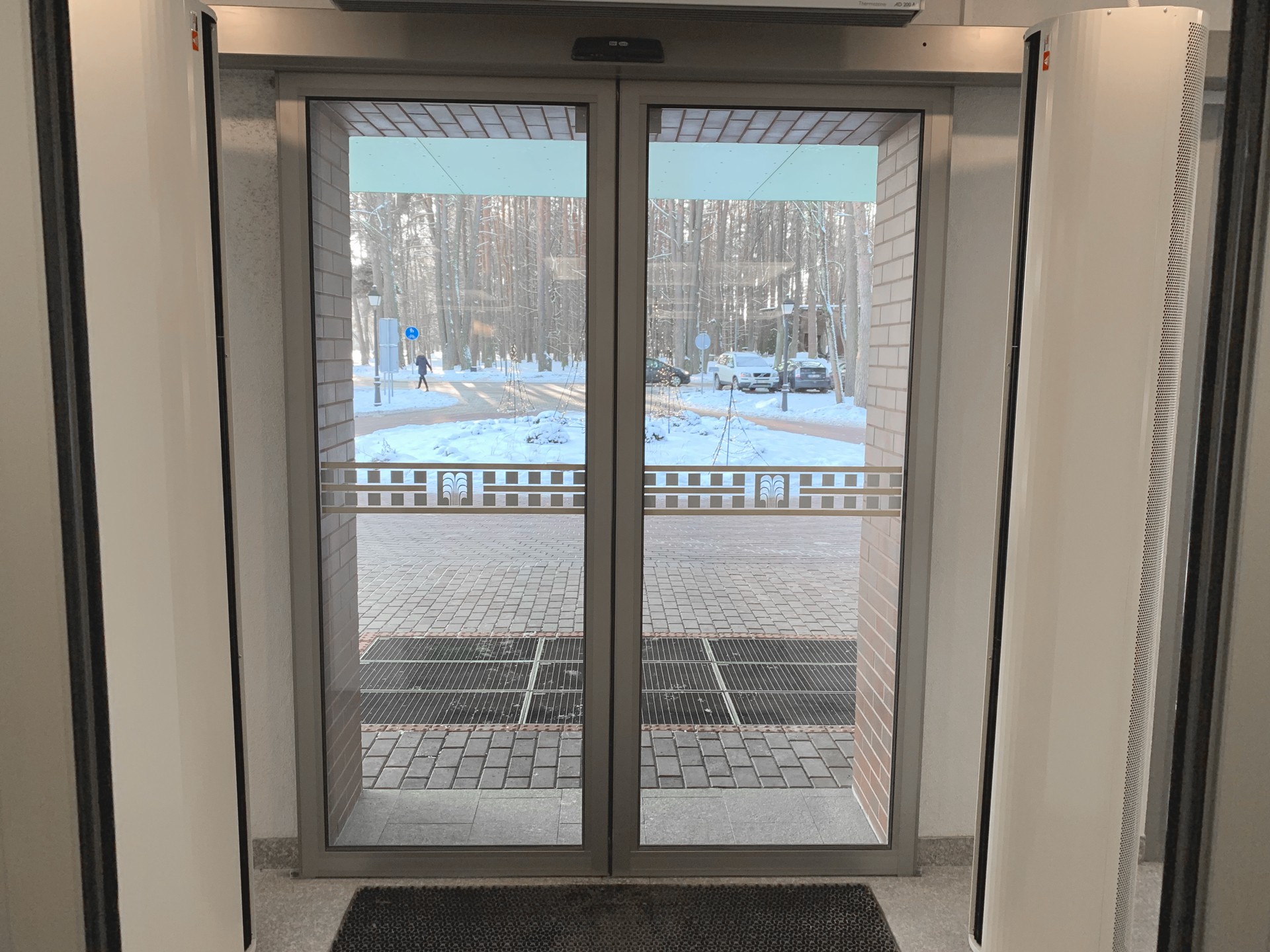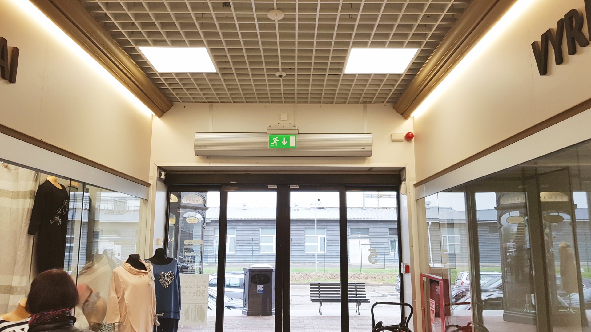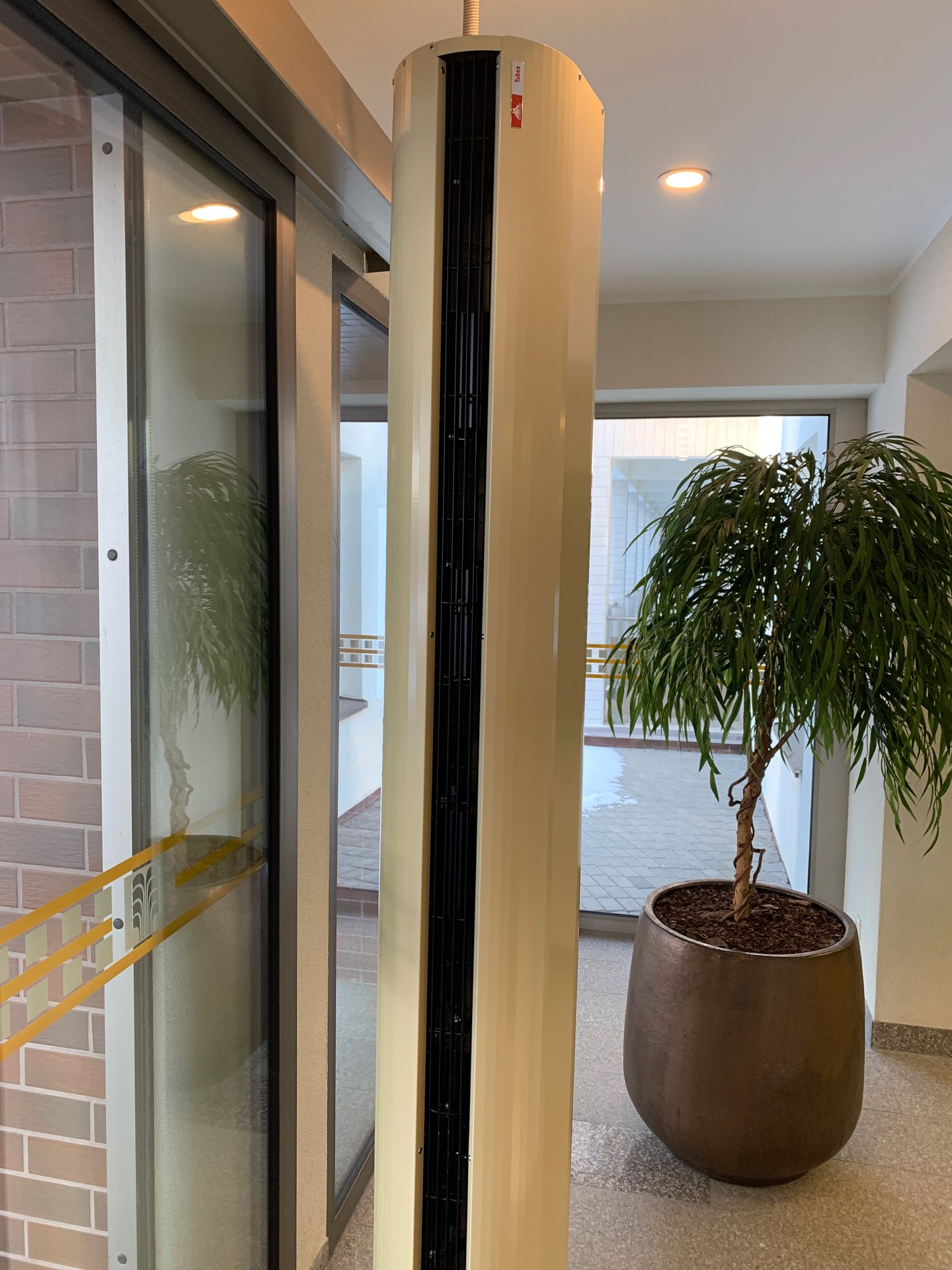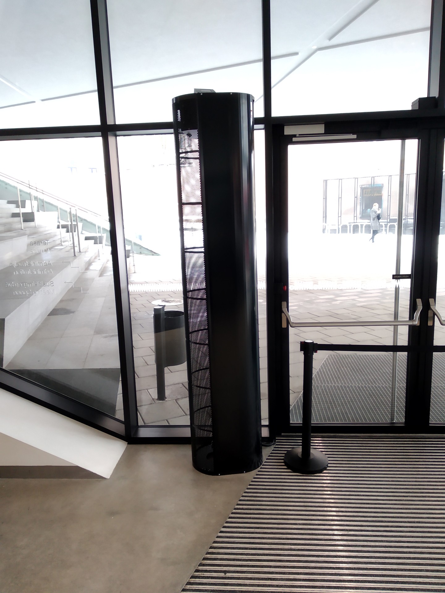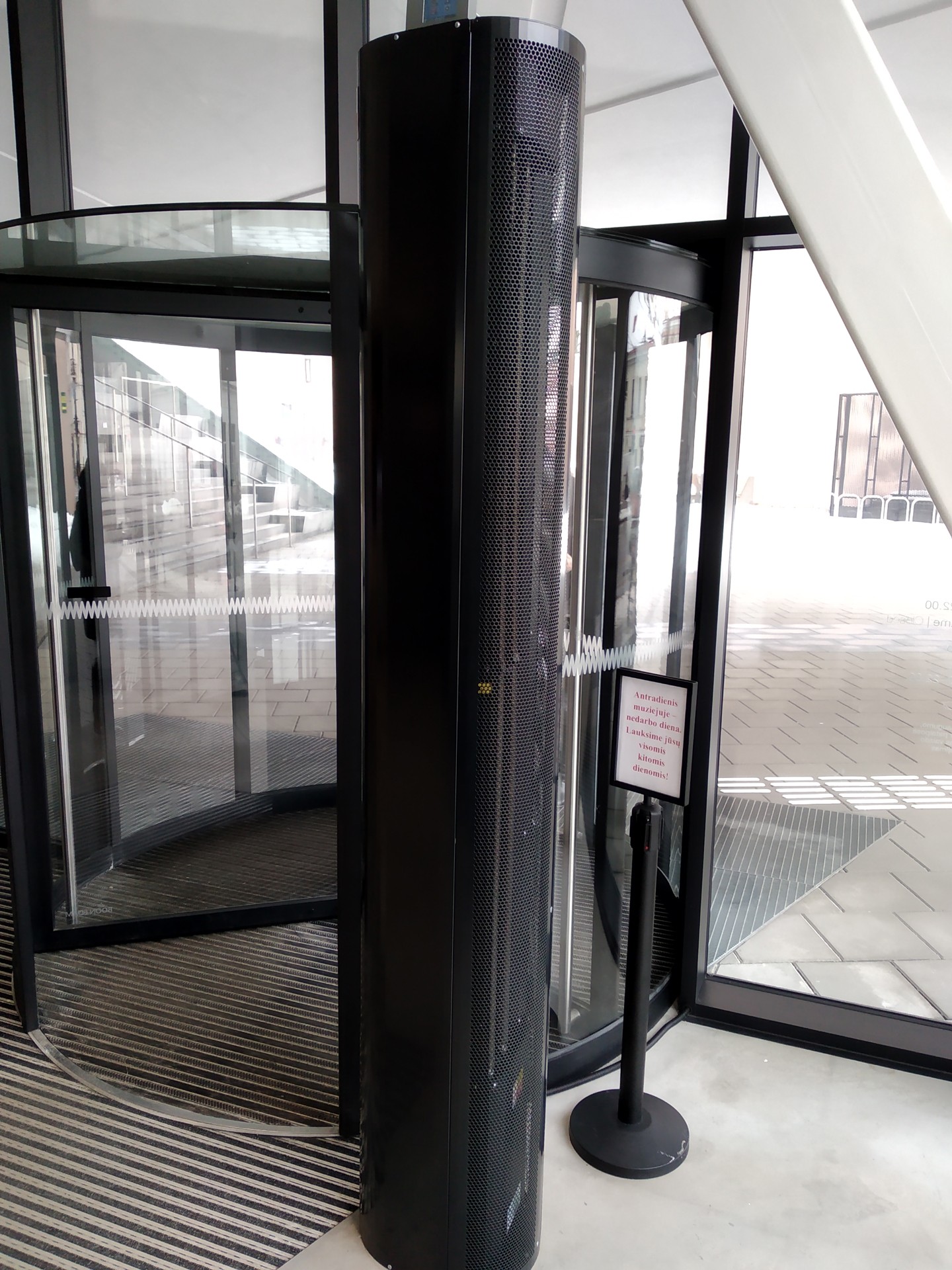 Oro užuolaidų Stavoklima Tubex naudojimas „Mo“ muziejuje prie dvigubų ir besisukančių durų. Pagal kliento pageidavimą užuolaidos yra matinės RAL 9011 spalvos ir su nuotolinio valdymo pulteliu. Užuolaida prie besisukančių durų nuolat veikia, todėl joje įmontuotas 12,5 kW elektrinis šildymo tenas.