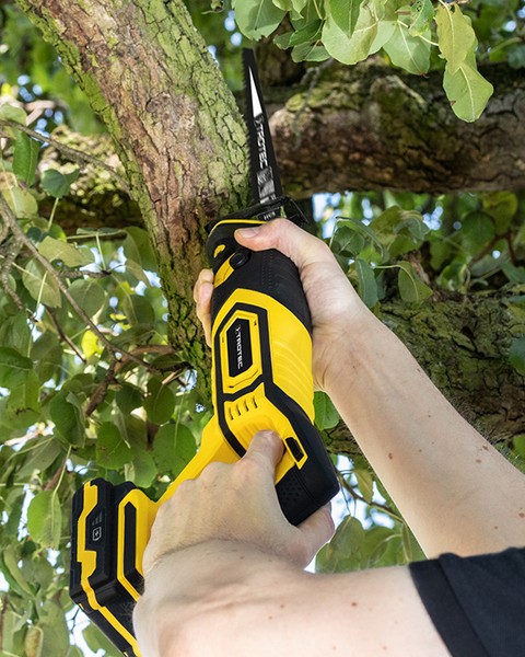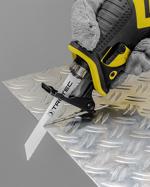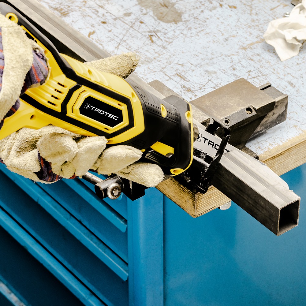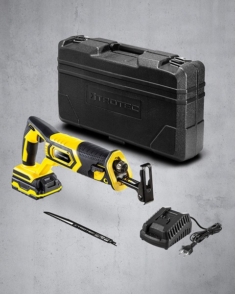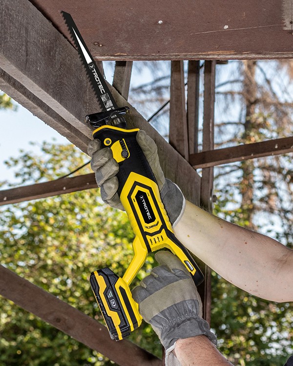 Iš sienos išsikišęs vandens vamzdis, sezoninis sodo genėjimas, faneros ar lentų smulkinimas pagal dydį - statybvietėse, sode ir buityje sutinkami darbai, kuriuos ypač patogiai galima atlikti su akumuliatoriniu tiesiniu pjūklu Trotec PRCS 10‑20V. Šis prietaisas skirtas plastikui, medienai, metalui bei statybinėms medžiagoms pjaustyti, naudojant atitinkamas pjūklo geležtes. Lengvai atliksite ne tik pjaustymo darbus, bet ir pjūvius tiesia ir vingiuota trajektorija bei nupjausite išsikišusias nereikalingas metalo ar kitas medžiagas prie pat plokštumos.