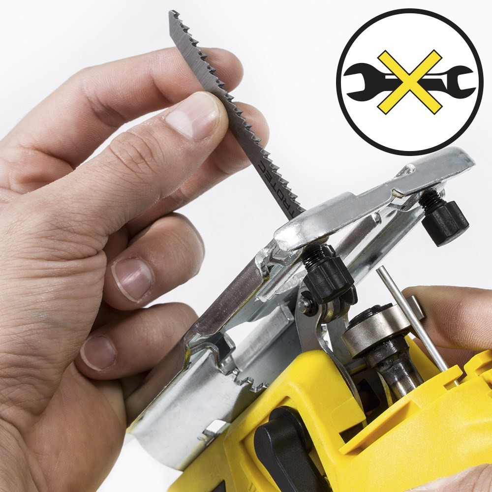 - Greitas ašmenų atleidimo griebtuvas, skirtas greitam ir papildomų įrankių nereikalaujamam ašmenų keitimui;