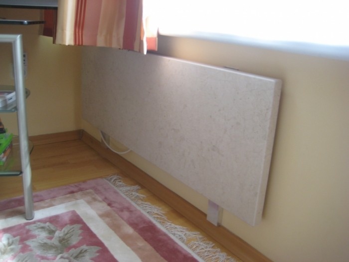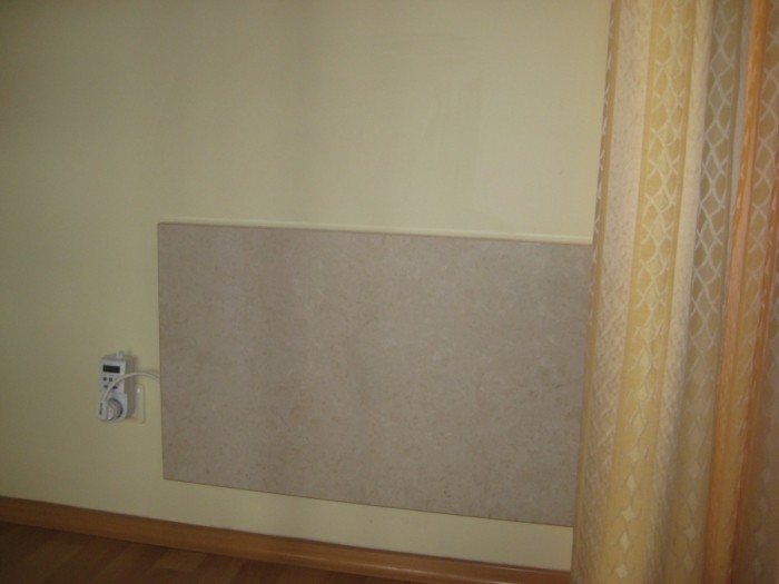 Šildymo plokštės Infrapower. Buto savininkė Auksė kreipėsi ieškodama ekonomiško šildymo sprendimo. Daugiabutis namas, kuriame klientė gyvena, buvo pastatytas prieš 12 metų. Jis yra gerai apšiltintas ir šildomas elektra. P. Auksės bute buvo sumontuoti konvekciniai elektriniai radiatoriai. Šeimininkė skundėsi, kad pastarieji yra neekonomiški, be to labai sausina orą. Sprendžiant problemą 64 m2 bute radiatoriai buvo pakeisti trimis šildymo plokštėmis po 850 W. Taip pat įdiegti du programuojami savaitiniai patalpos termostatai. Bendra galia 2550 W (40W/1 m2). Už sausį (pabrangus elektrai) p. Auksė šildymui sumokėjo 198 Lt. (2010 m.) Palaikoma temperatūra kambariuose - 20 laipsnių. Klientė yra patenkinta nauja šildymo sistema, nes ji padeda sutaupyti ne mažiau kaip pusė ankstesnių išlaidų šildymui, o taip pat mikroklimatas kambariuose tapo gaivesnis.