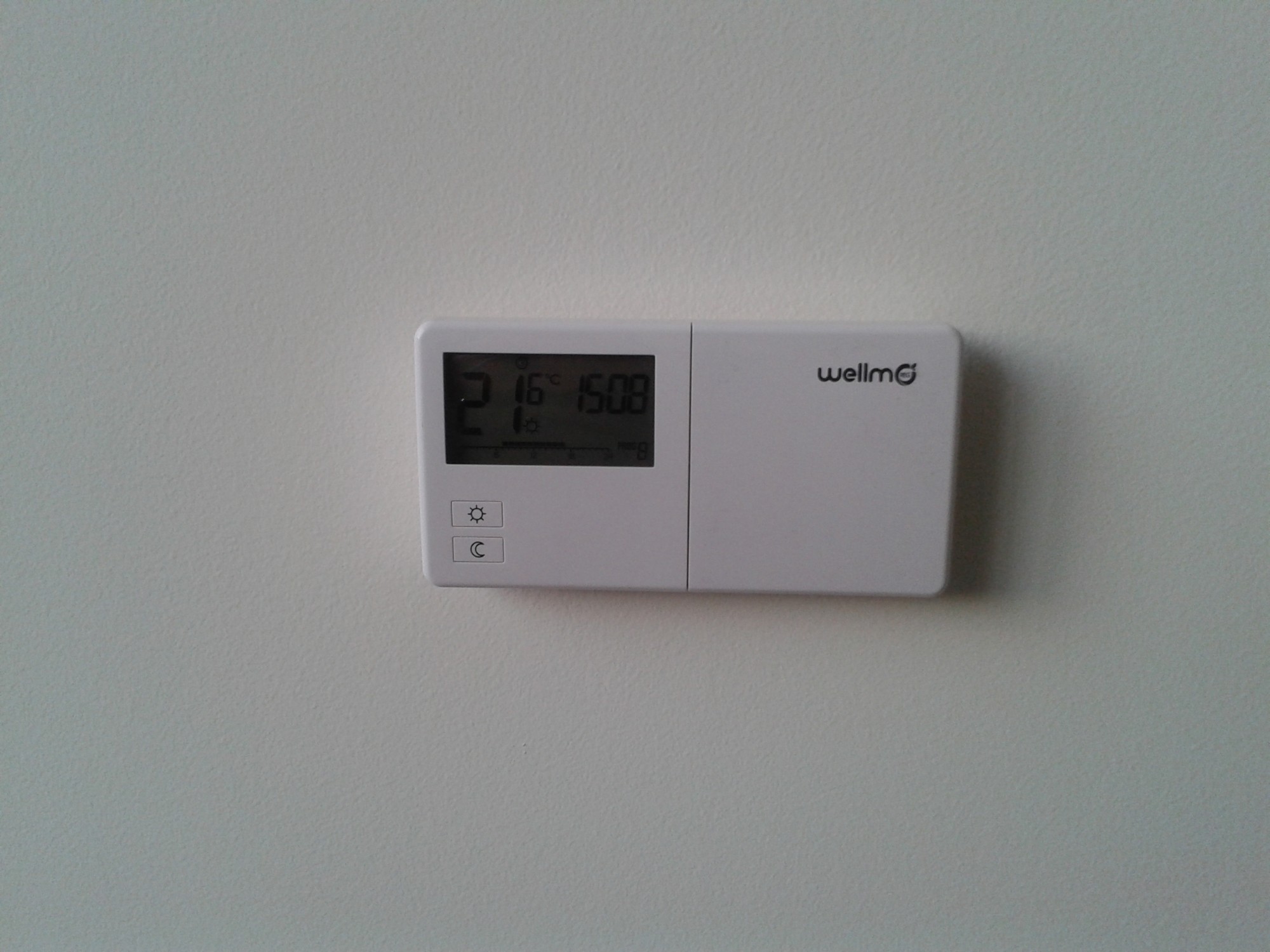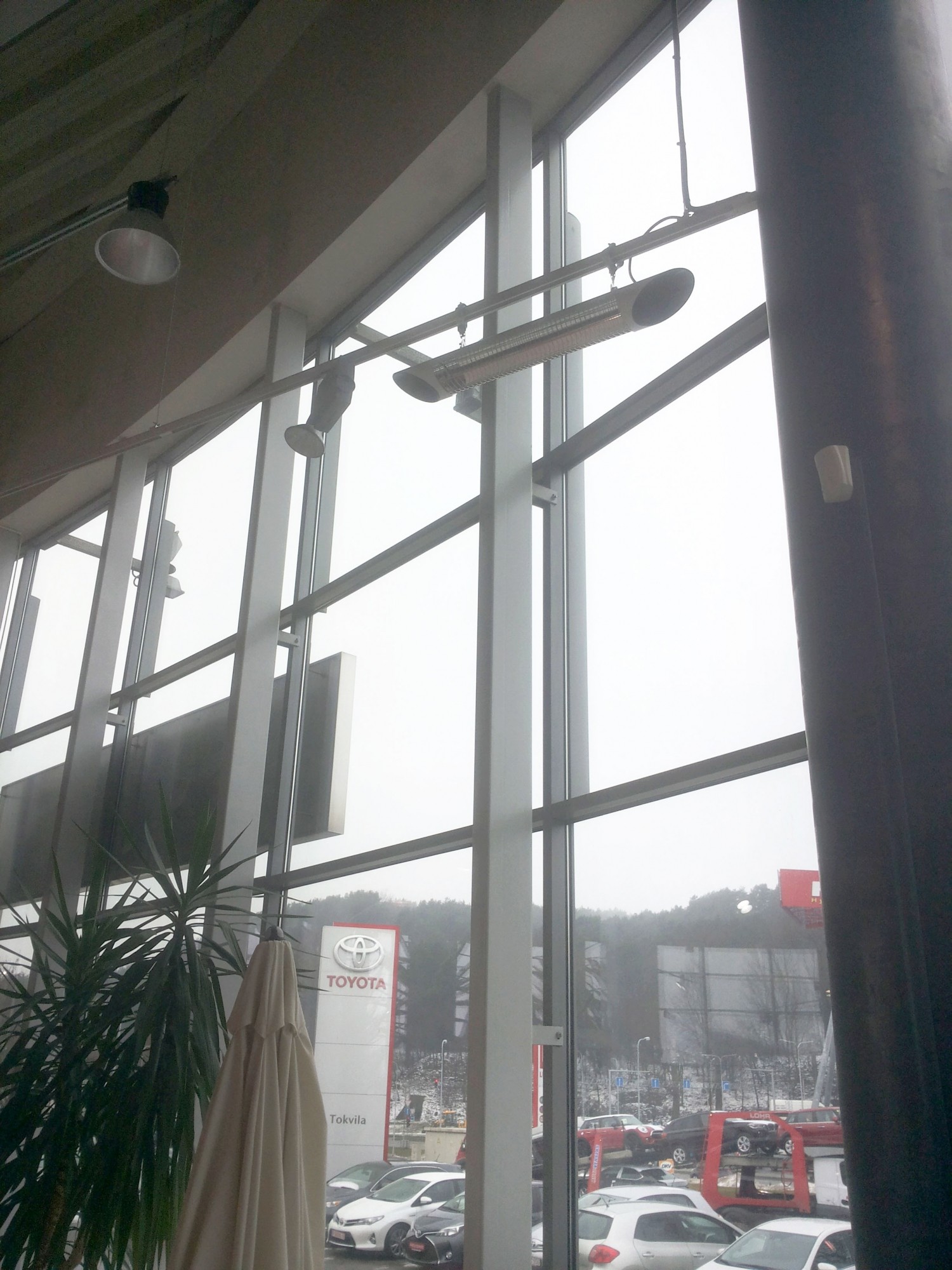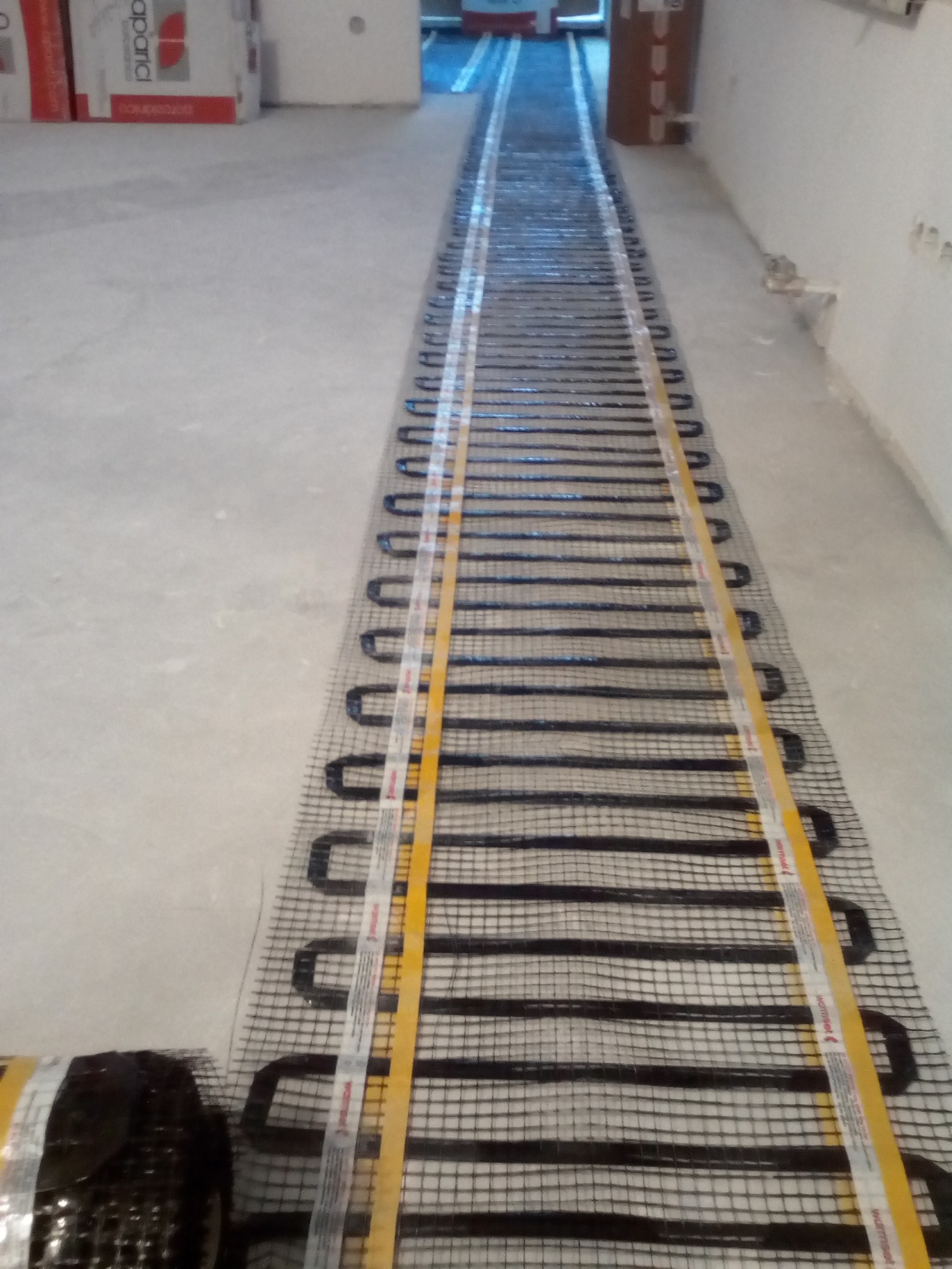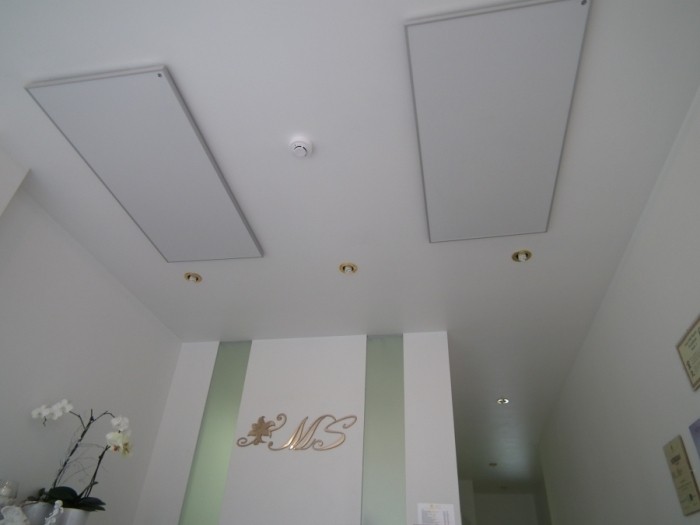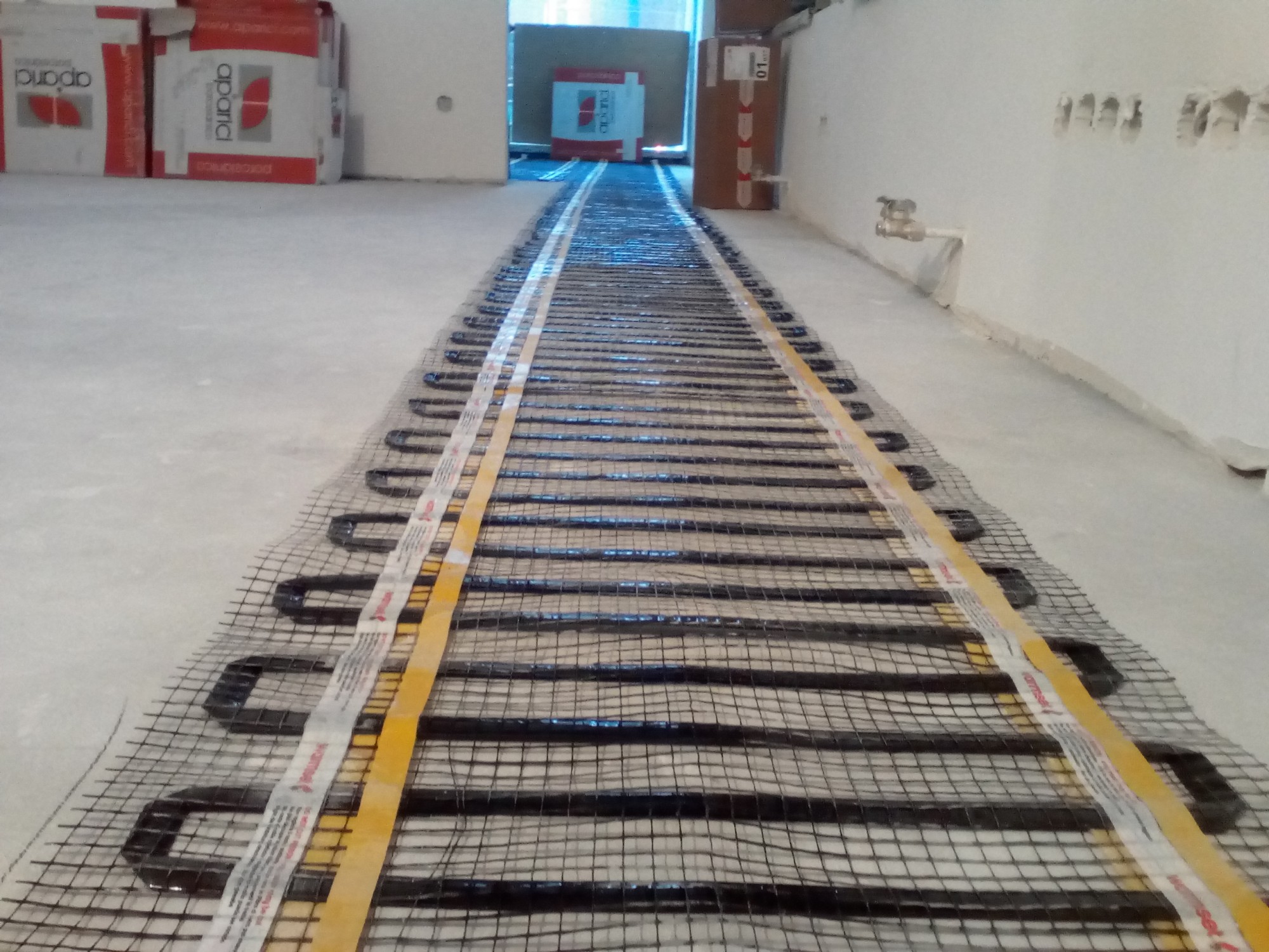 Patalpoms šildyti buvo įrengti 8 EE24 Energotech šildytuvai ir VEITO Pietra S (papildomas šildymas virš kavos staliuko). Šildytuvai valdomi WTH25.08 termostatais. Patalpa padalinta į dvi dalis, kuriuose naudojami du programuojami termostatai ir 8 EE24 šildytuvai. Vienas termostatas valdo 4 šildytuvus (iš viso 9,6 Kw). Naudojamas trifazis (~380V) elektrinis maitinimas. Kiekvienas šildytuvo kaitinimo tenas prijungtas prie atskiros fazės, taigi, užsakovas turi galimybę naudoti nuo 1 iki 3 katinimo tenus vienu metu ir tokiu būdu koreguoti bendrą šildytuvų galingumą (kiekvienai fazei yra įrengtas atskiras jungiklis).
