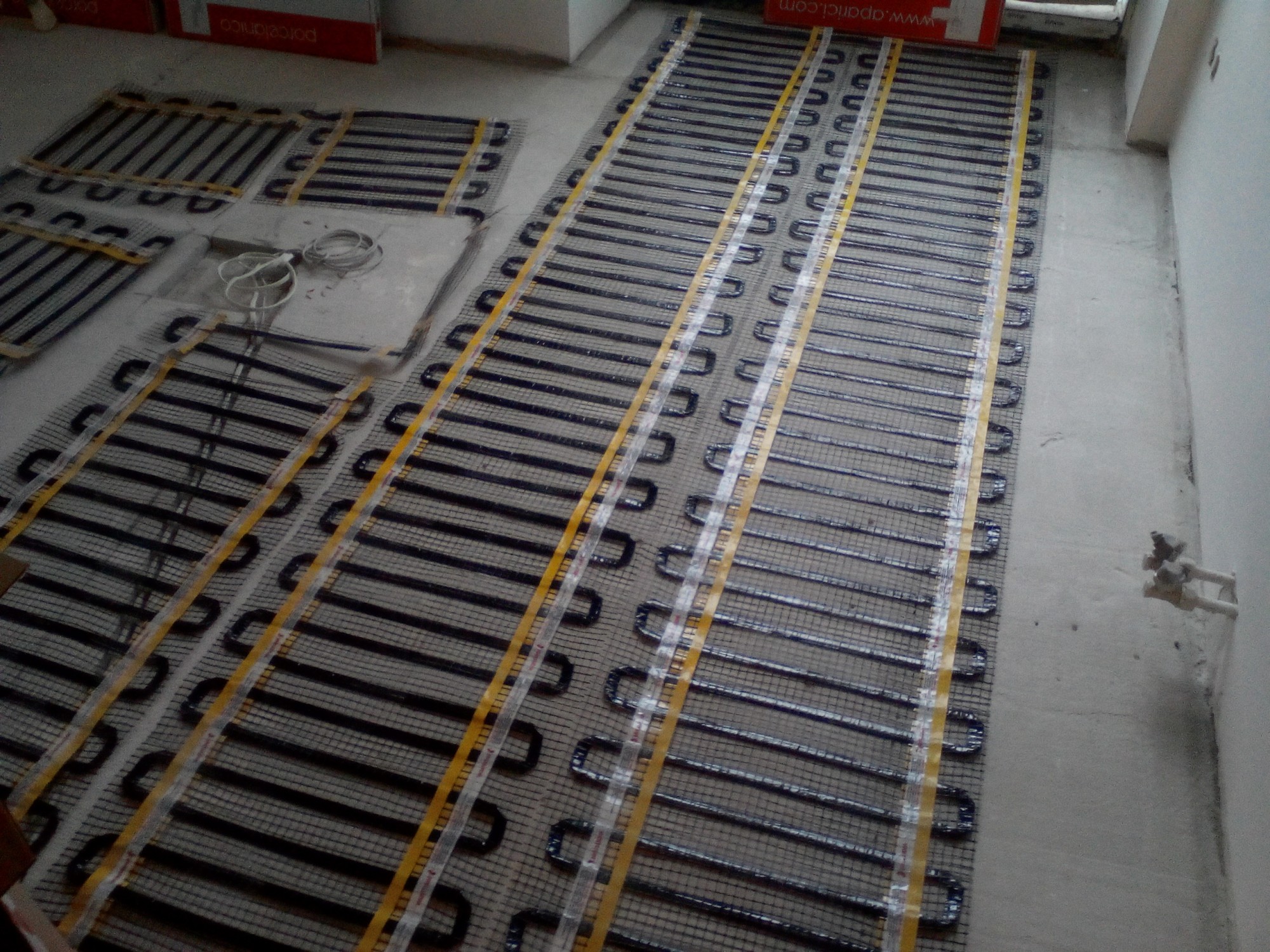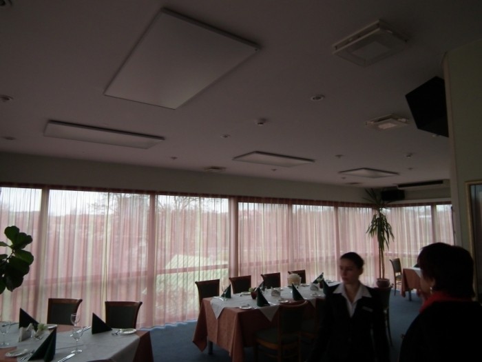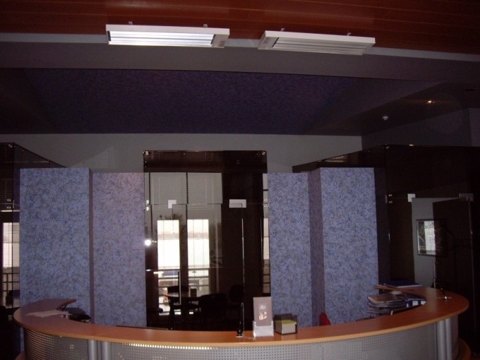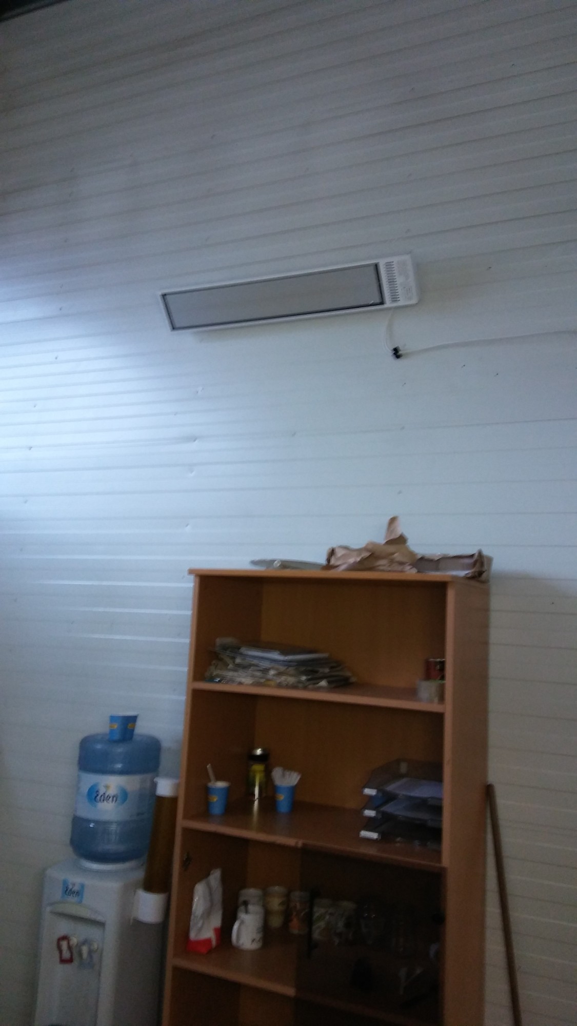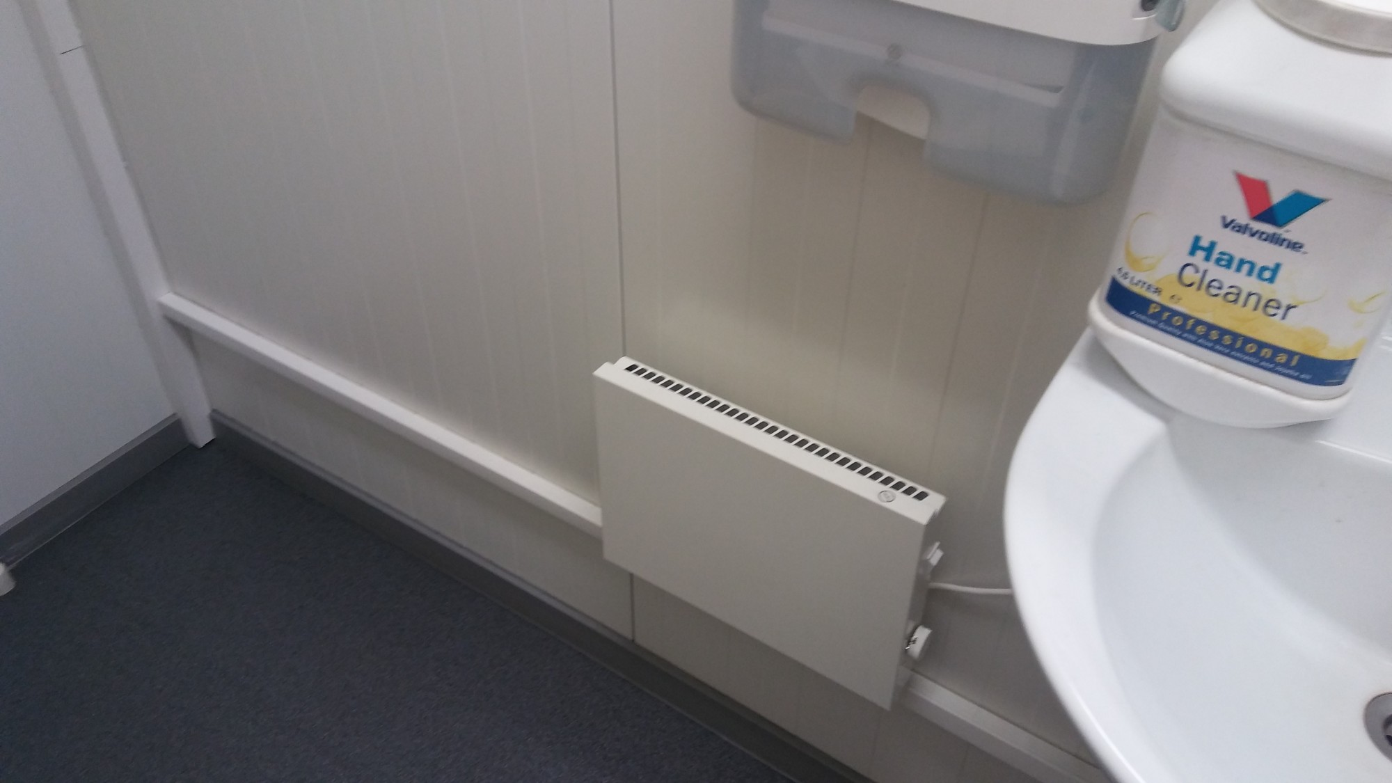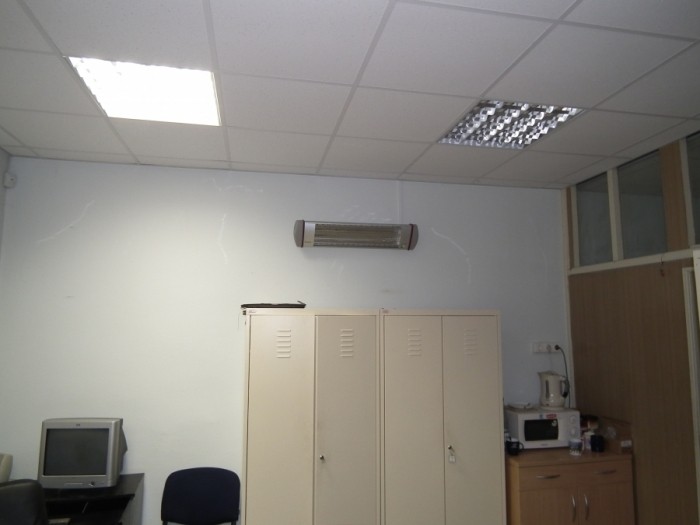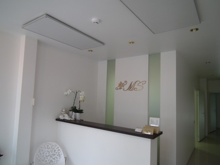 Patalpoms šildyti buvo įrengti 8 EE24 Energotech šildytuvai ir VEITO Pietra S (papildomas šildymas virš kavos staliuko). Šildytuvai valdomi WTH25.08 termostatais. Patalpa padalinta į dvi dalis, kuriuose naudojami du programuojami termostatai ir 8 EE24 šildytuvai. Vienas termostatas valdo 4 šildytuvus (iš viso 9,6 Kw). Naudojamas trifazis (~380V) elektrinis maitinimas. Kiekvienas šildytuvo kaitinimo tenas prijungtas prie atskiros fazės, taigi, užsakovas turi galimybę naudoti nuo 1 iki 3 katinimo tenus vienu metu ir tokiu būdu koreguoti bendrą šildytuvų galingumą (kiekvienai fazei yra įrengtas atskiras jungiklis).