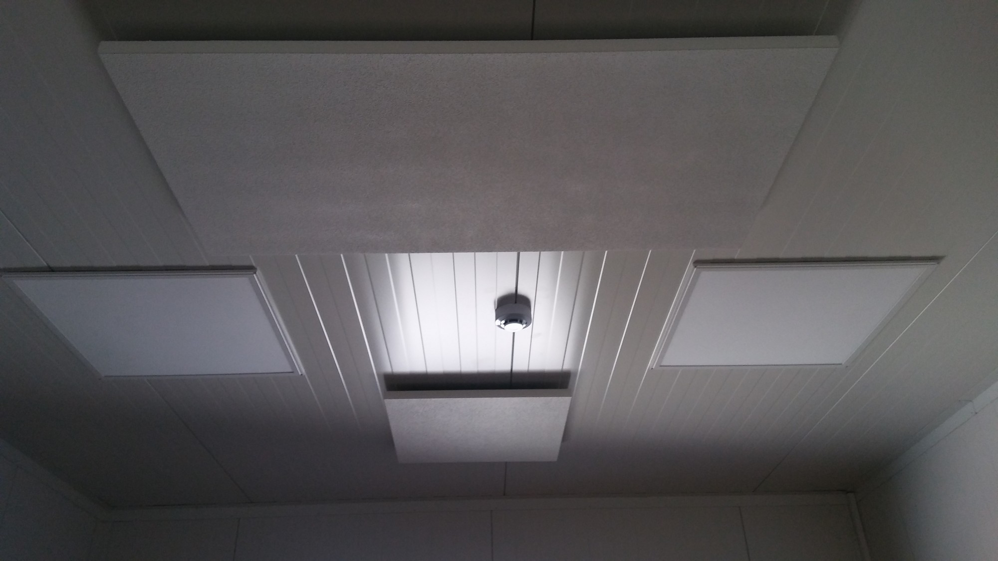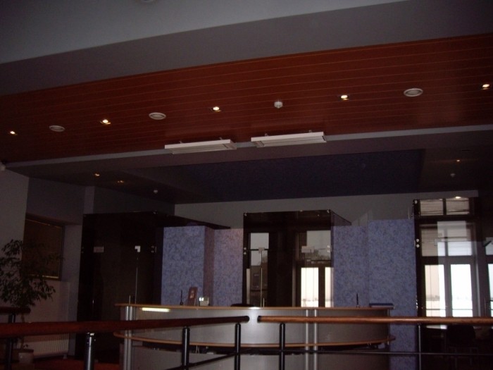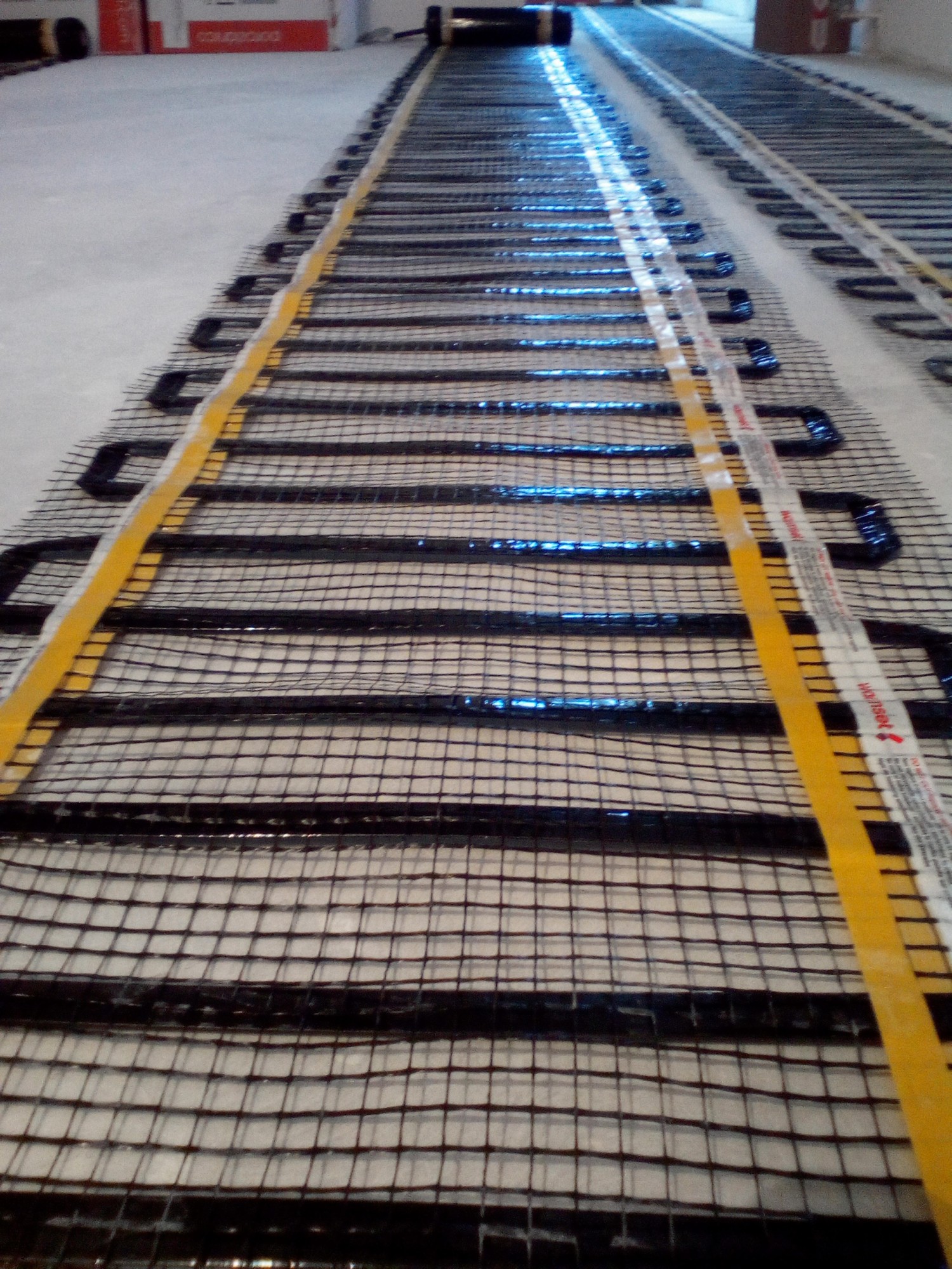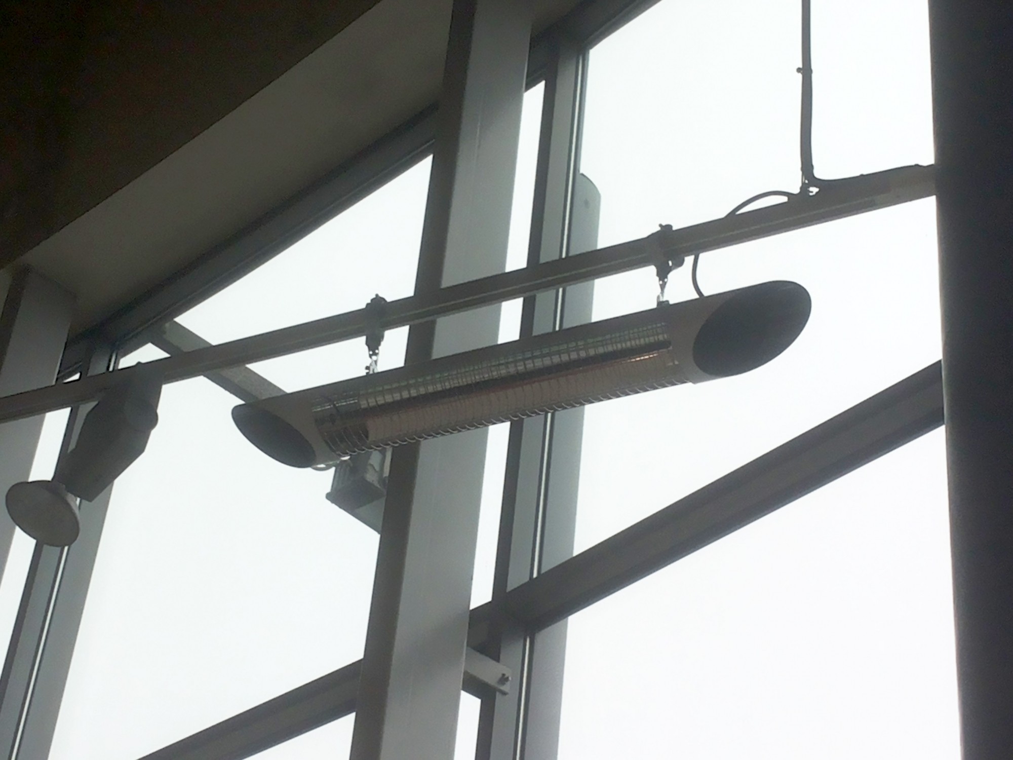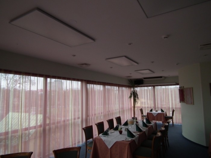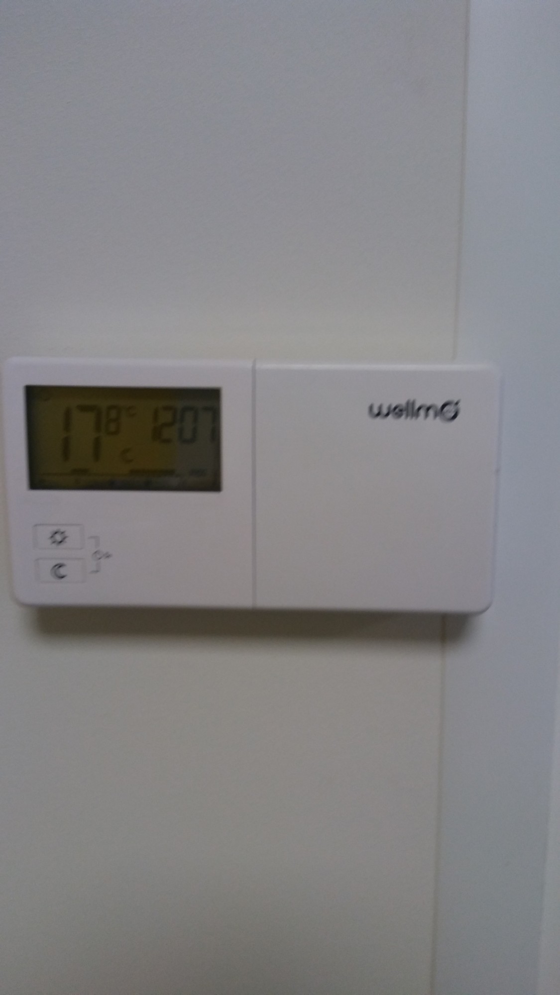 Patalpoms šildyti buvo įrengti 8 EE24 Energotech šildytuvai ir VEITO Pietra S (papildomas šildymas virš kavos staliuko). Šildytuvai valdomi WTH25.08 termostatais. Patalpa padalinta į dvi dalis, kuriuose naudojami du programuojami termostatai ir 8 EE24 šildytuvai. Vienas termostatas valdo 4 šildytuvus (iš viso 9,6 Kw). Naudojamas trifazis (~380V) elektrinis maitinimas. Kiekvienas šildytuvo kaitinimo tenas prijungtas prie atskiros fazės, taigi, užsakovas turi galimybę naudoti nuo 1 iki 3 katinimo tenus vienu metu ir tokiu būdu koreguoti bendrą šildytuvų galingumą (kiekvienai fazei yra įrengtas atskiras jungiklis).