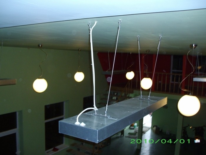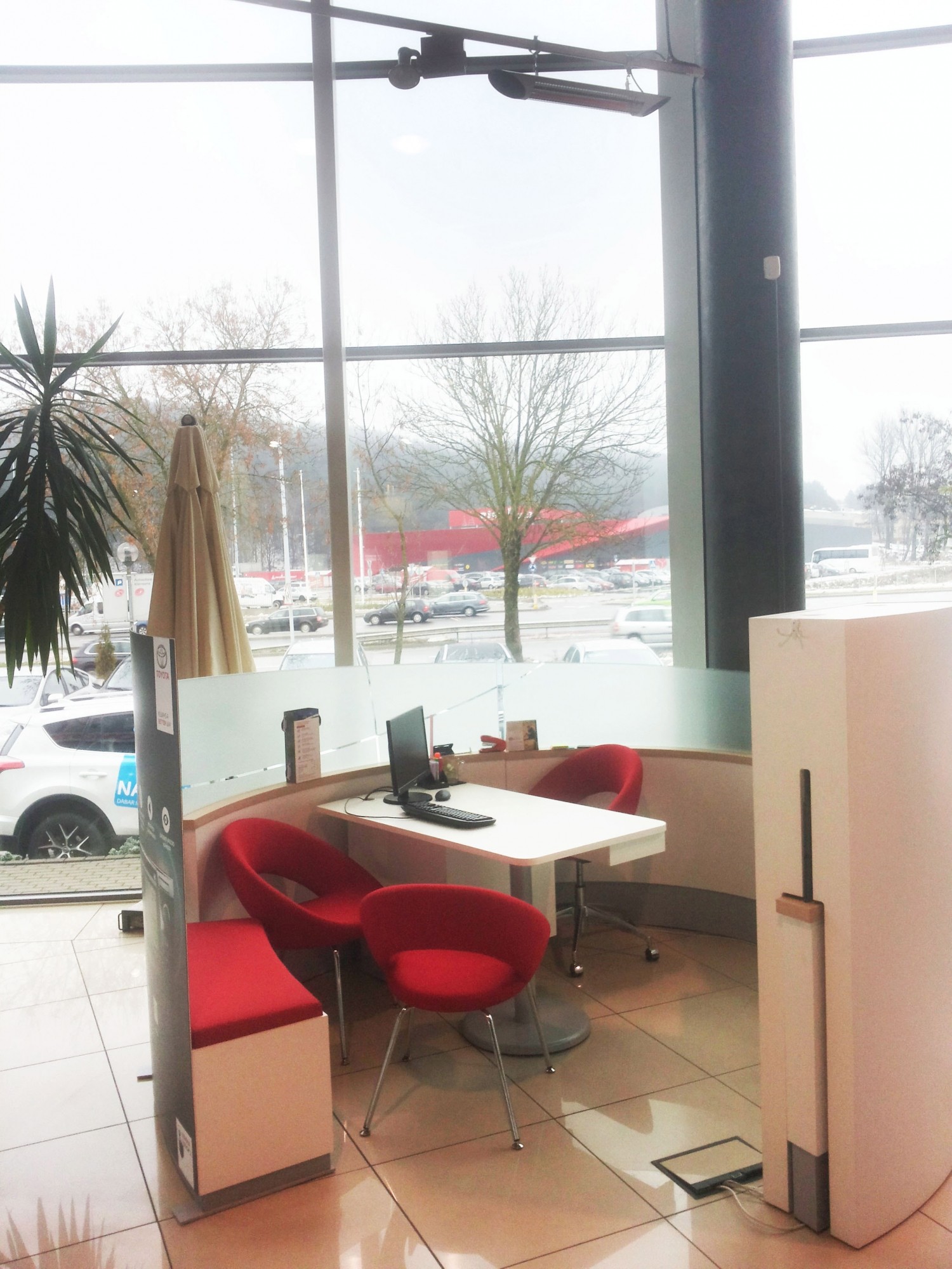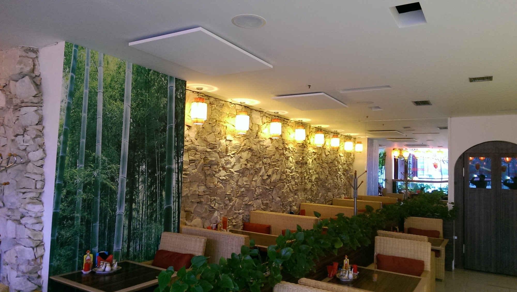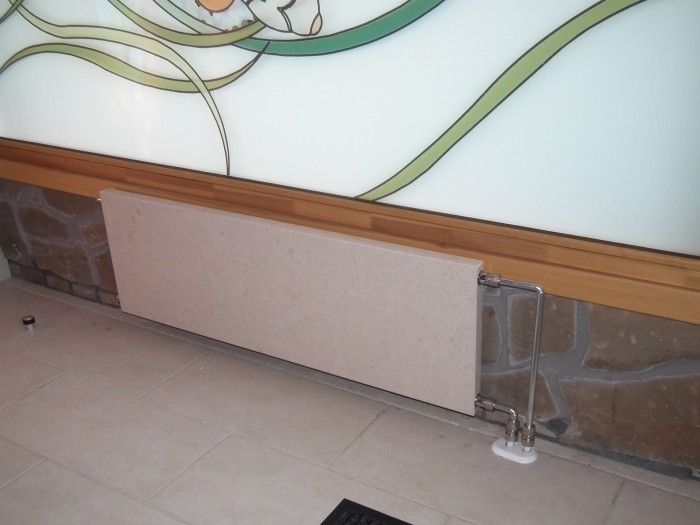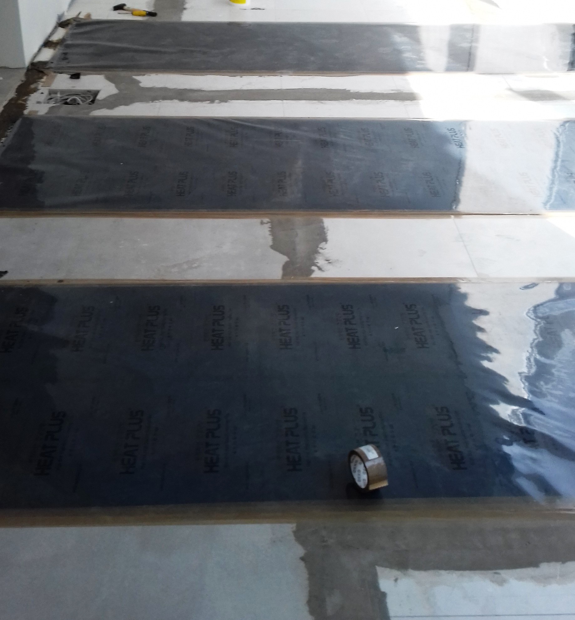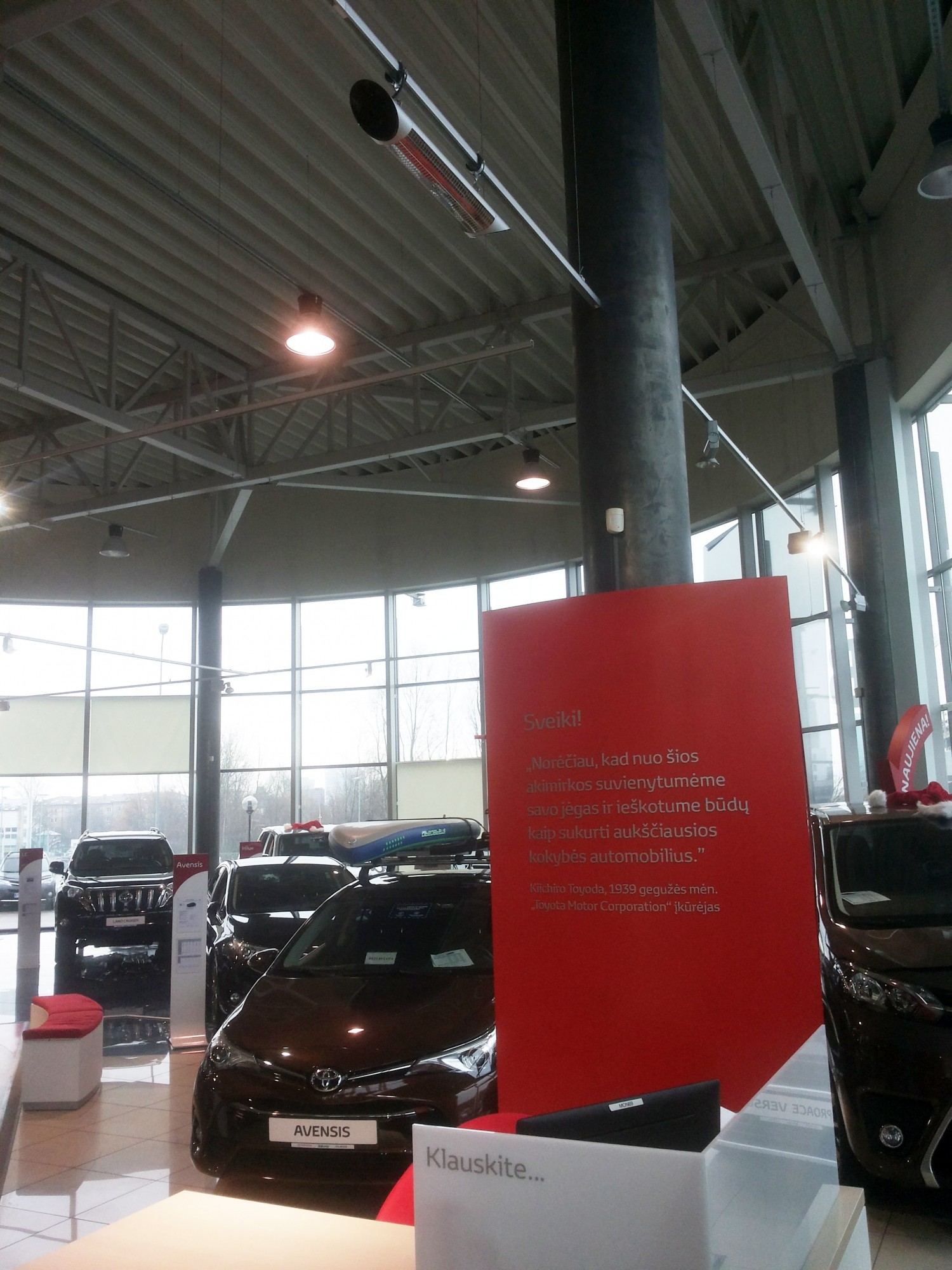 Patalpoms šildyti buvo įrengti 8 EE24 Energotech šildytuvai ir VEITO Pietra S (papildomas šildymas virš kavos staliuko). Šildytuvai valdomi WTH25.08 termostatais. Patalpa padalinta į dvi dalis, kuriuose naudojami du programuojami termostatai ir 8 EE24 šildytuvai. Vienas termostatas valdo 4 šildytuvus (iš viso 9,6 Kw). Naudojamas trifazis (~380V) elektrinis maitinimas. Kiekvienas šildytuvo kaitinimo tenas prijungtas prie atskiros fazės, taigi, užsakovas turi galimybę naudoti nuo 1 iki 3 katinimo tenus vienu metu ir tokiu būdu koreguoti bendrą šildytuvų galingumą (kiekvienai fazei yra įrengtas atskiras jungiklis).