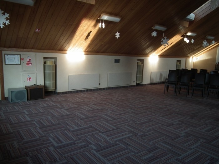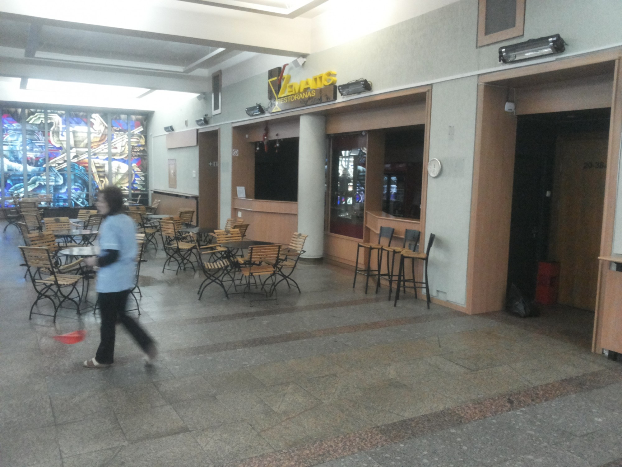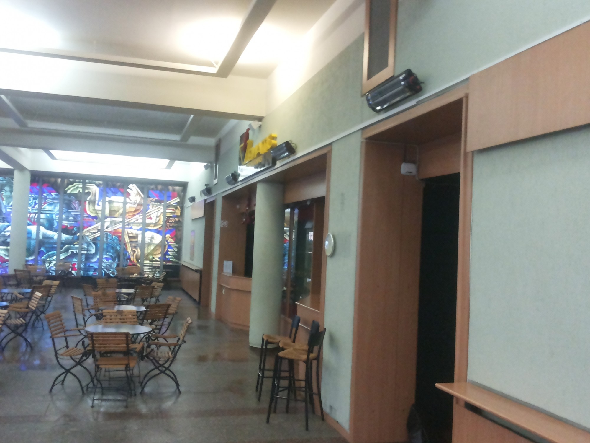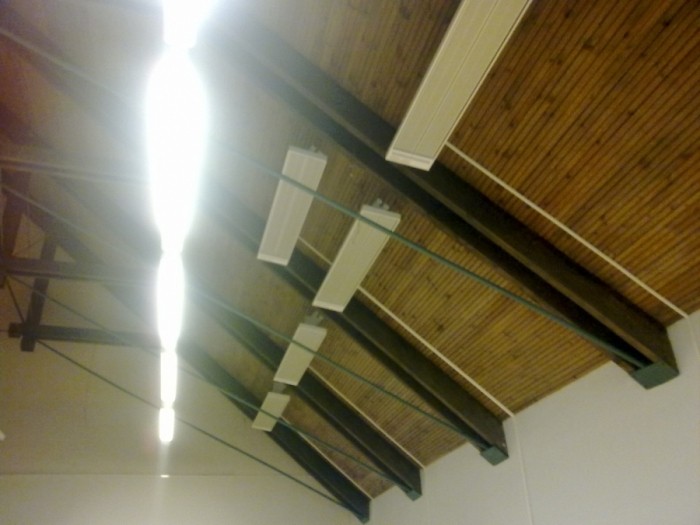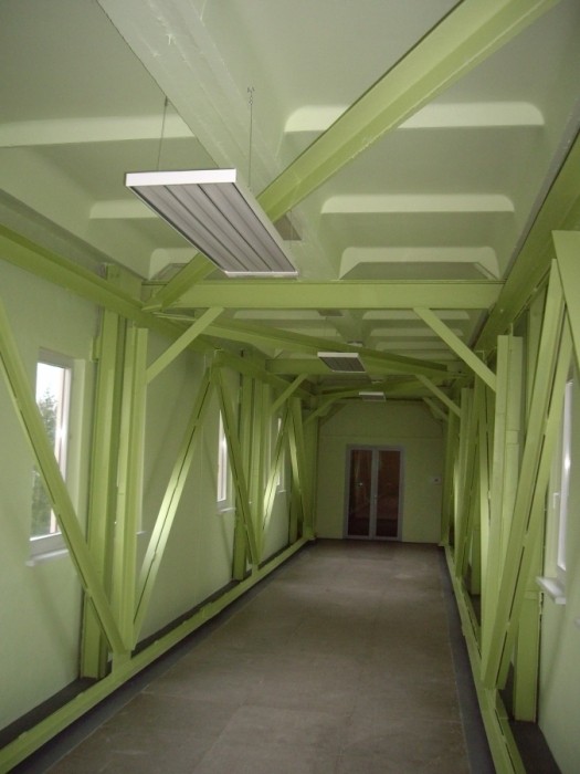2. Viduje yra įrengta scena, įmontuoti dideli langai per visą sieną, lubų aukštis siekia 4,6–7 m. Pastatas yra nesandarus, todėl jo energetinio efektyvumo lygis yra labai mažas. Patalpų temperatūra šaltuoju metu siekia vos 16 laipsnių šilumos pajungus centrinio šildymo sistemą.