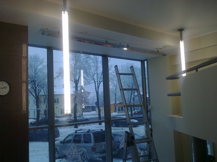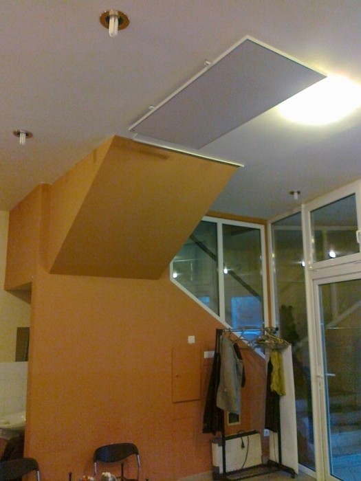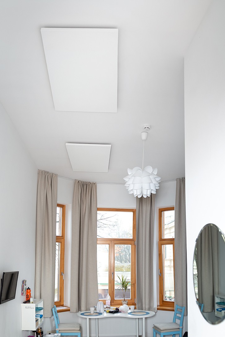 Prieš tai patalpas buvo bandyta šildyti šildytuvais, tačiau jie garsiai veikdavo, sausindavo patalpų orą, keldavo dulkes ir eikvodavo per daug energijos.