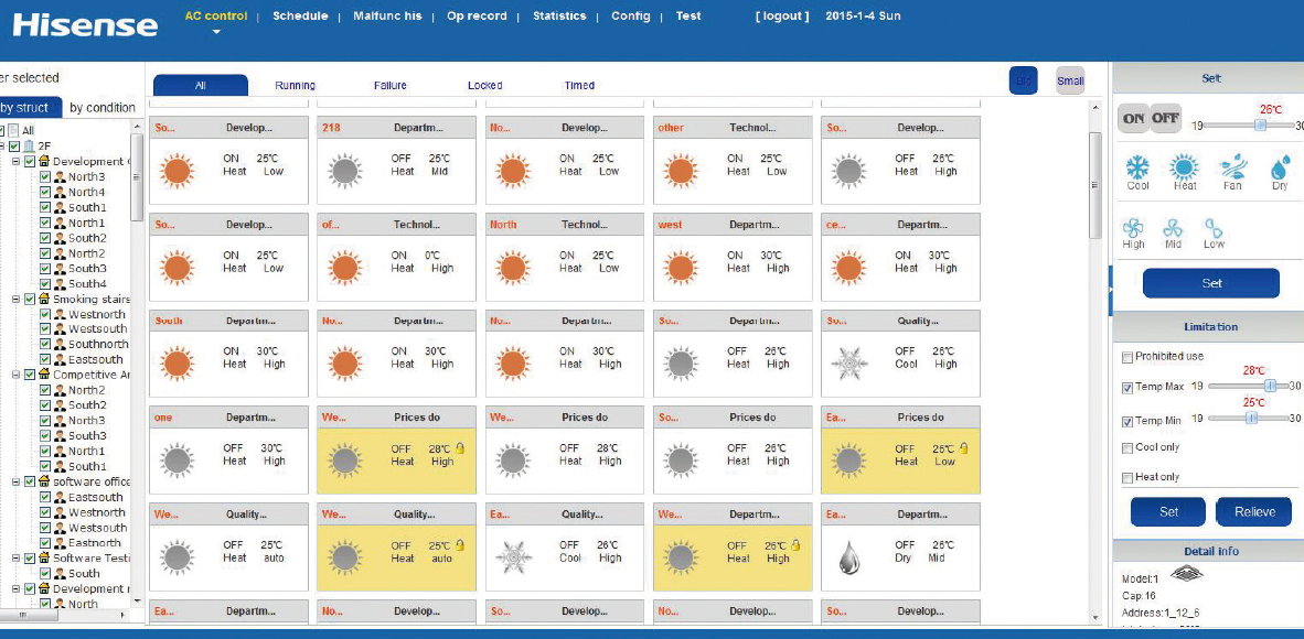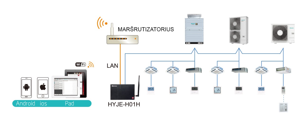 „VRF Hisense“ sistemų darbą kontroliuoja daugybė išmaniųjų valdiklių. Prieinamos prietaisų ir jų grupių funkcijos bei programavimo galimybės dienos ar savaitės režimu palengvina oro kokybės kontrolę mūsų aplinkoje.